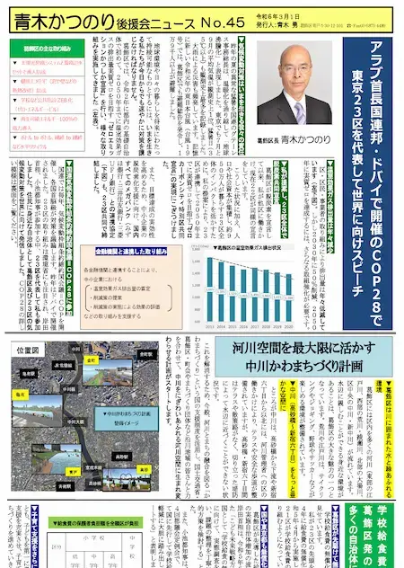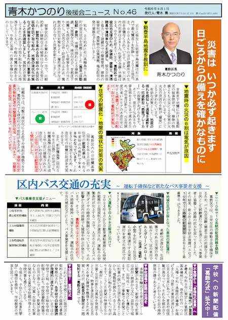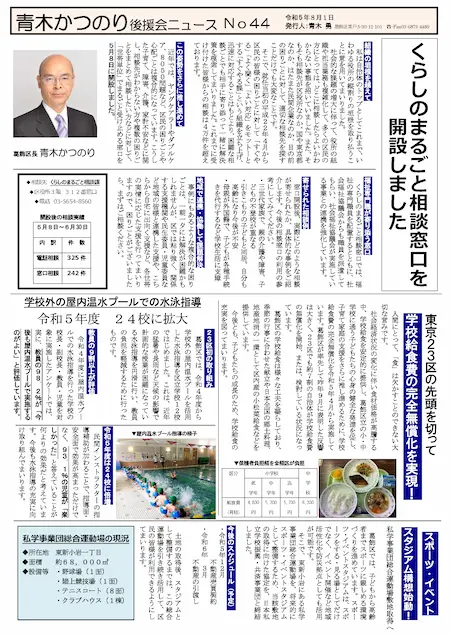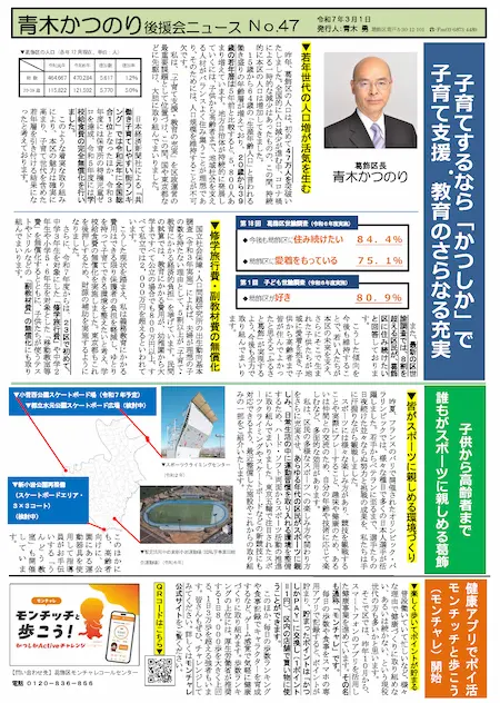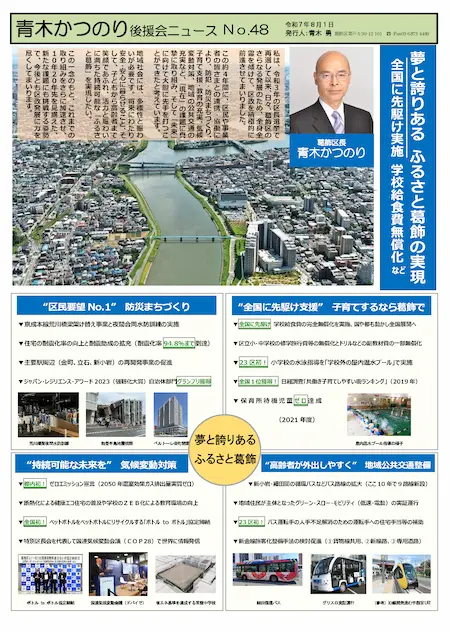 これまでの葛飾区長としての活動をまとめた「青木かつのり 後援会ニュース」です。